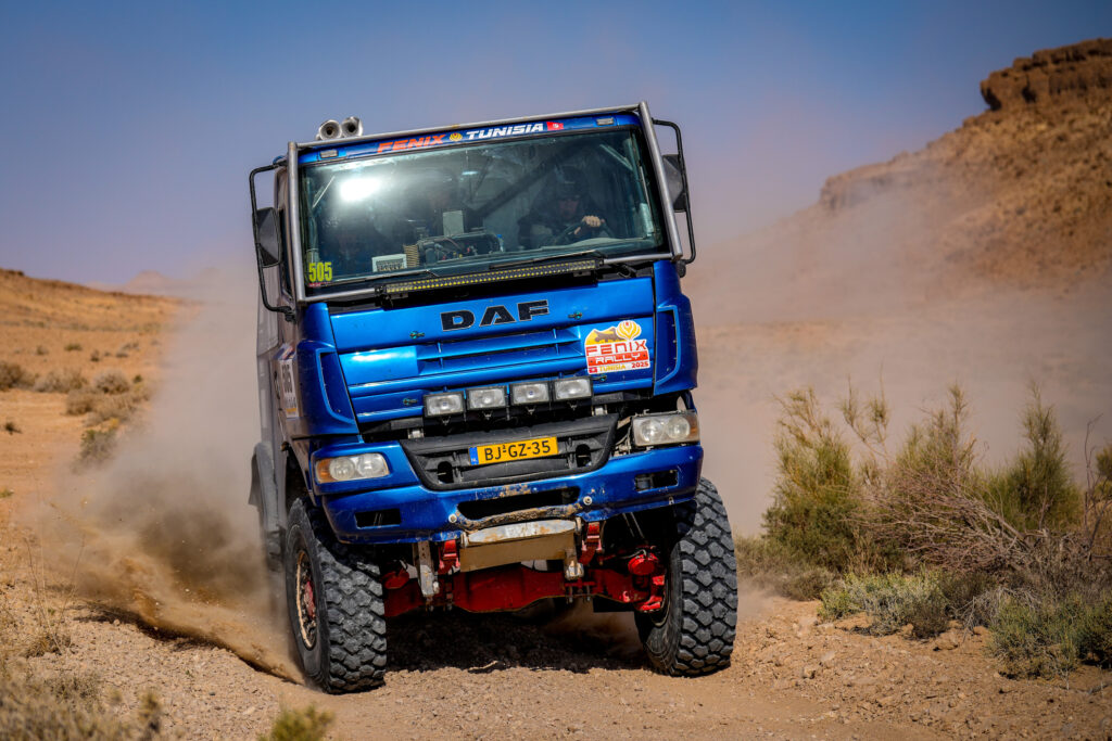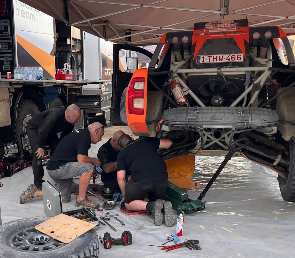 Op dag zes van de Fenix Rally 2025 trokken de deelnemers van Douz terug richting Monastir, het symbolische start- én eindpunt van deze compacte woestijnrally. De route bestond uit twee specials, afgewisseld met lange verbindingsstukken: eerst 130 kilometer tegen de klok, daarna 190 kilometer verbinding, een tweede special van 40 kilometer, en tenslotte de laatste aanloop naar het bivak. Technisch gezien een dag met afwisseling, maar ook met veel potentie voor verrassingen. En dat laatste werd waarheid voor een van de topfavorieten.