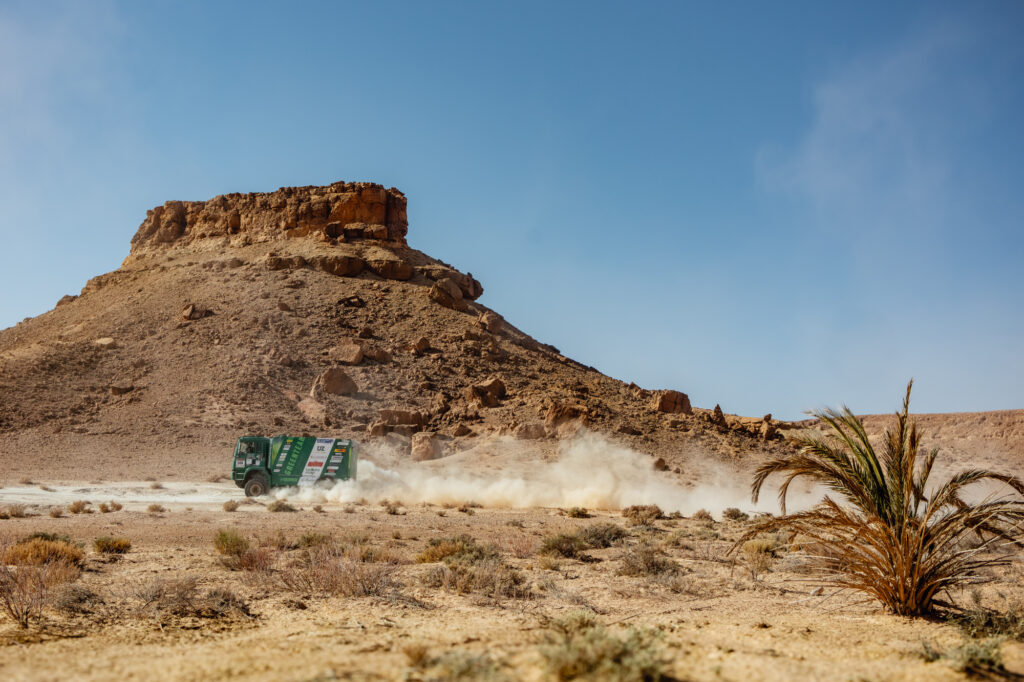 De sfeer in het kamp van het Rainbow Truck Team was ontspannen en tevreden. Na een lange rallyweek weten Gerrit Zuurmond, Tjeerd van Ballegooij en Klaas Kwakkel precies wat er nog moet gebeuren: constant blijven, niks forceren, en de voorsprong consolideren. Dat lukte vandaag uitstekend. Met een tweede tijd in de zesde etappe bleven ze hun directe concurrenten ruim voor in het algemeen klassement.