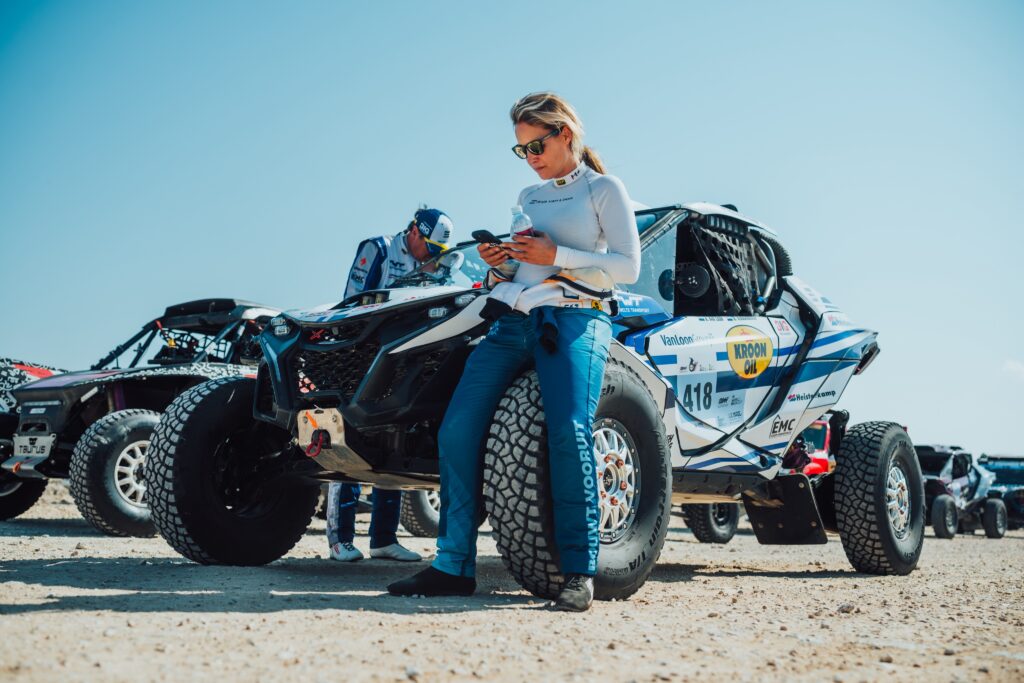 Voor Erik en Anja van Loon begon de dag met hoge verwachtingen na een veelbelovende proloog. Beiden gingen uitstekend van start in hun splinternieuwe Can-Am Maverick R van South Racing, maar werden al snel getroffen door pure pech. Bij Erik ging het na 25 kilometer mis toen de temperatuur van de auto begon op te lopen. “Ik heb gas teruggenomen, maar het werd niet beter,” vertelt hij teleurgesteld. “Na 32 kilometer moesten we stoppen. Een steen had de ventilator geraakt en zo de radiator lek geslagen. Dit is nog nooit gebeurd, en nu gebeurt het met een gloednieuwe auto. Wat een pech zeg.”