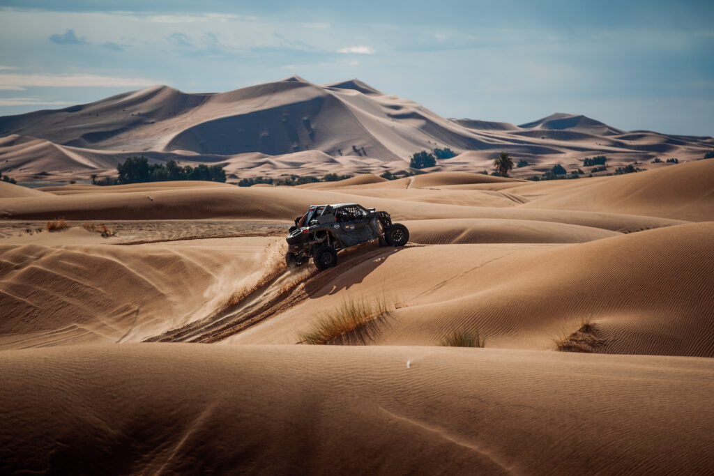 De derde rallydag begon met de eerste echte duinen van deze editie. Een terrein dat risico’s vergt, zeker voor het team dat moet openen. Erik van Loon blikt kritisch terug: “Tijdens het openen in de duinen heb ik teveel laten liggen. We hebben behoudend gereden, wat logisch is als je voorop rijdt. We werden onderweg ingehaald door een andere deelnemer die later crashte. We hebben hen geholpen tot de assistentie arriveerde. Gelukkig gaat het goed met ze, maar het bevestigt wel dat iets rustiger rijden vaak de beste keuze is.”