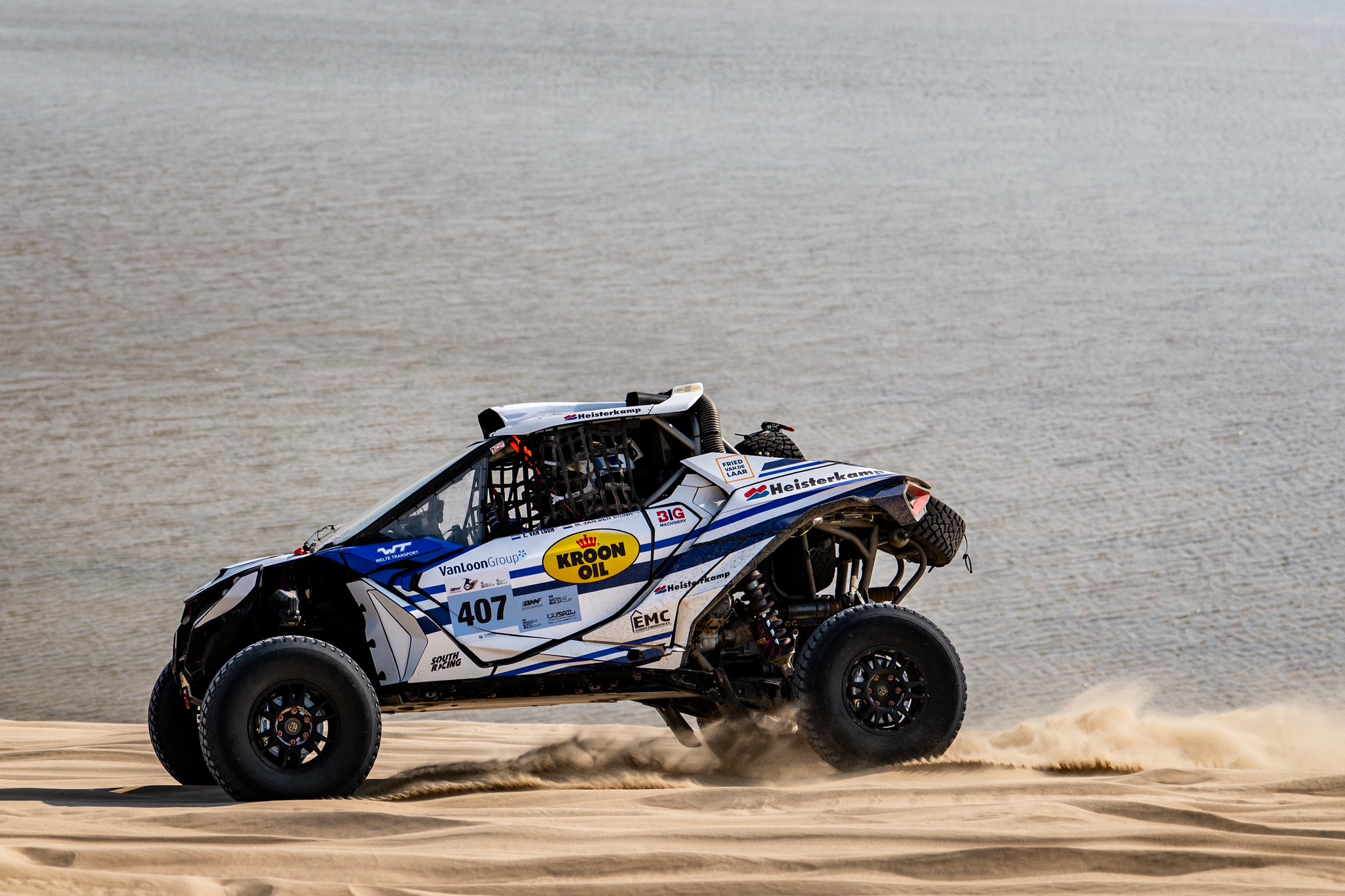 Erik van Loon finished the day seventh in the SSV class. The stage was full of setbacks for him and navigator Martin van den Brink. “We had a fuel pump failure, struggled with a lot of dust, and the sentinel wasn’t working. We also had a flat tire, and after a water crossing, the iPad got blocked,” Erik summarized the problems. “Anyway, we finished, and it was great to do this together with Martin. And despite all the bad luck, we can still celebrate because Mitchell, Martin’s son, has become champion of the FIA Baja World Cup.”