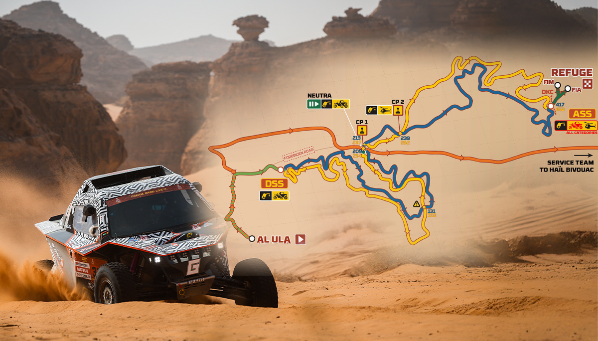 The route leads competitors deep into the AlUla region, continuing the varied terrain seen in previous days. The opening section consists of fast sandy tracks through canyons, often off the beaten path. Navigation is tricky here due to the large number of tracks and waypoints. After about one hundred kilometers, the landscape opens up to wide plateaus where speed can increase, though navigation becomes more challenging due to a lack of clear visual markers.